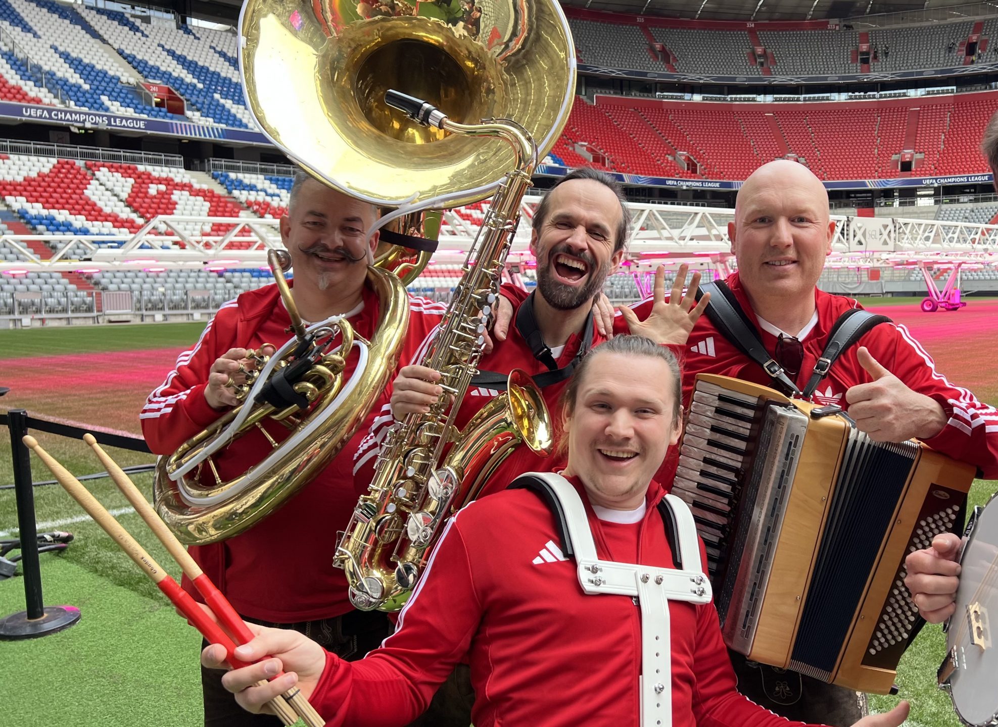 Wir sind leidenschaftliche Musiker, die es lieben, Menschen zu begeistern und zu unterhalten. Unser Repertoire reicht von Dixie, PopSwing über Oldies und Evergreens bis hin zu Polka und World Music – für jede Stimmung und jeden Moment das Richtige. Mit handgemachter Live-Musik schaffen wir Atmosphäre, Energie und echte Festival-Emotionen. Ob Drums, Akkordeon, Sousaphon/Kontrabass oder Saxophone – unser kompakter, lebendiger Sound passt perfekt zu jedem Stadtfest.